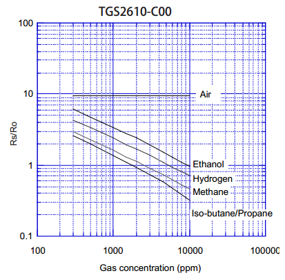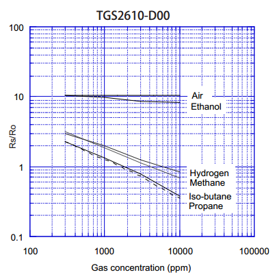 四、可燃氣體傳感器/液化石油氣傳感器TGS2610靈敏度特性: