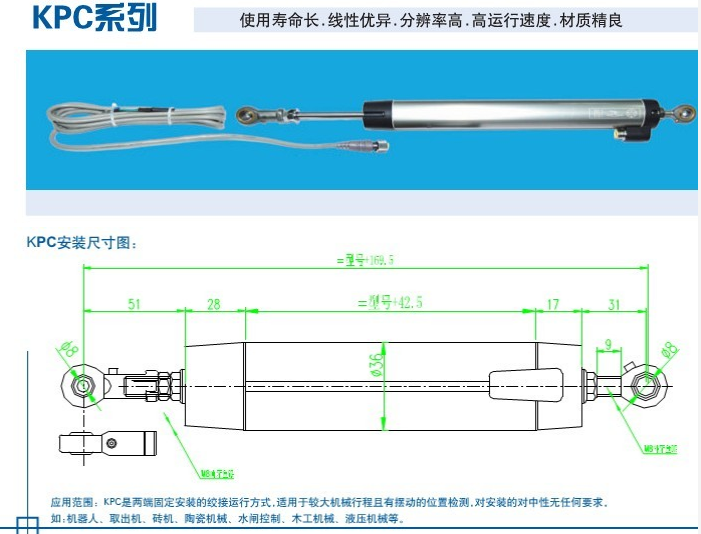 5、解析度:無限分辨;(鉸接式直線位移傳感器|直線位移傳感器|電子尺|KPC直線位移傳感器)