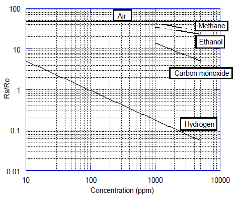 Ro = 傳感器在100ppm 氫氣中, 溫濕度為20°C , 65% R.H.時的電阻值