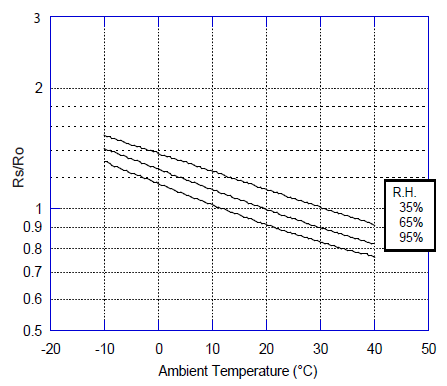 縱坐標表示傳感器電阻比 Rs/Ro,Rs與Ro的定義如下: