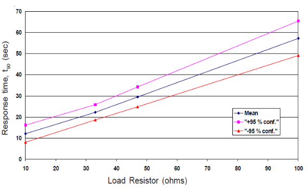 正如所有 Alphasense 的毒氣傳感器一樣,增加負(fù)載電阻值會(huì)延長(zhǎng)反應(yīng)時(shí)間,但也能降低噪聲以獲得更好的分辨率 。