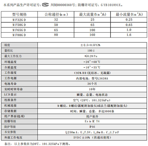 四、MF-GD系列中低壓質(zhì)量流量計(jì)型號(hào)以及參數(shù)