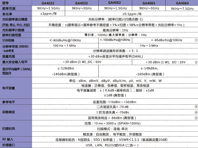 三、頻譜分析儀GA40XX技術(shù)參數(shù)