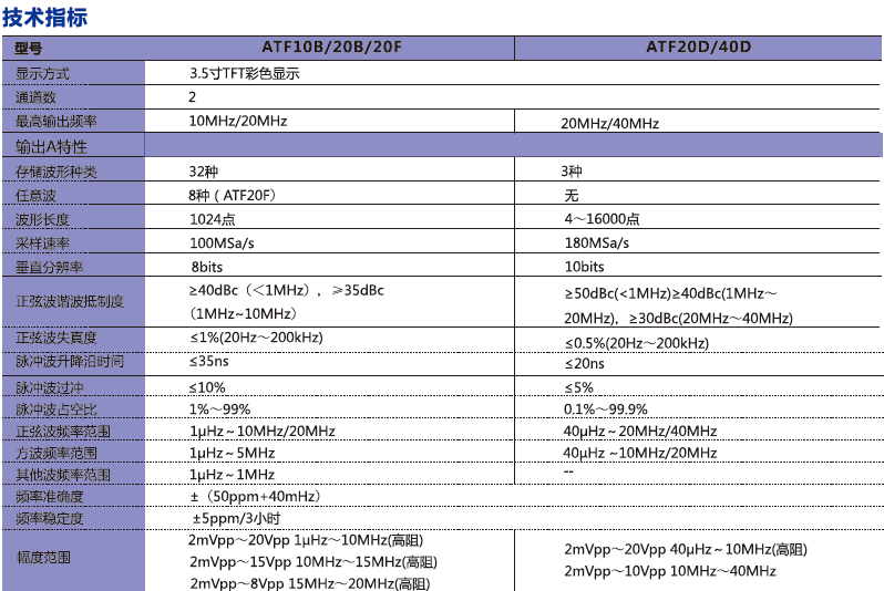 三、ATF函數(shù)信號(hào)發(fā)生器技術(shù)指標(biāo)