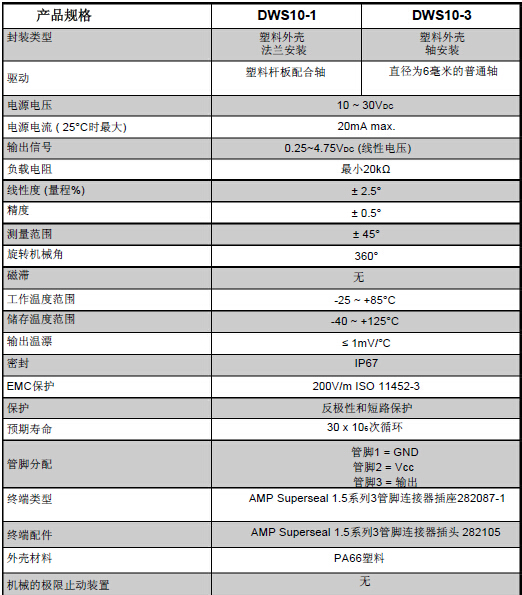 七、旋轉(zhuǎn)位置傳感器DWS10技術(shù)參數(shù)