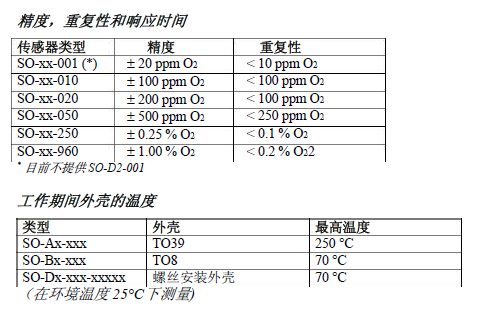 測(cè)量范圍:Type SO-D2-001-A100C ? ??10 ppm – 1000 ppm O2