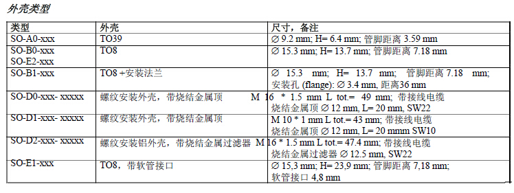 對于所有類型的傳感器來說,流率大小取決于傳感器吹掃方法(直流,氣流形狀等等)和測量室尺寸, SO-E1-xxx (TO8 +