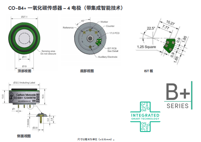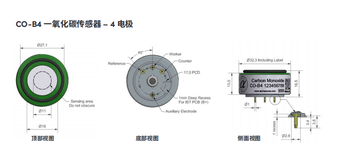 二、英國(guó)alphasense 高分辨率一氧化碳傳感器(CO傳感器)CO-B4 CO-B4+ 特性: