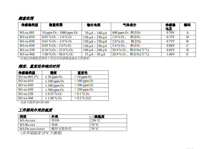 測(cè)量范圍:Type SO-D2-001-A300C     10ppm - 1000ppm O2