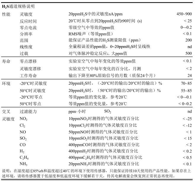 五、SOH-A2 型傳感器的H2S通道規(guī)格說(shuō)明