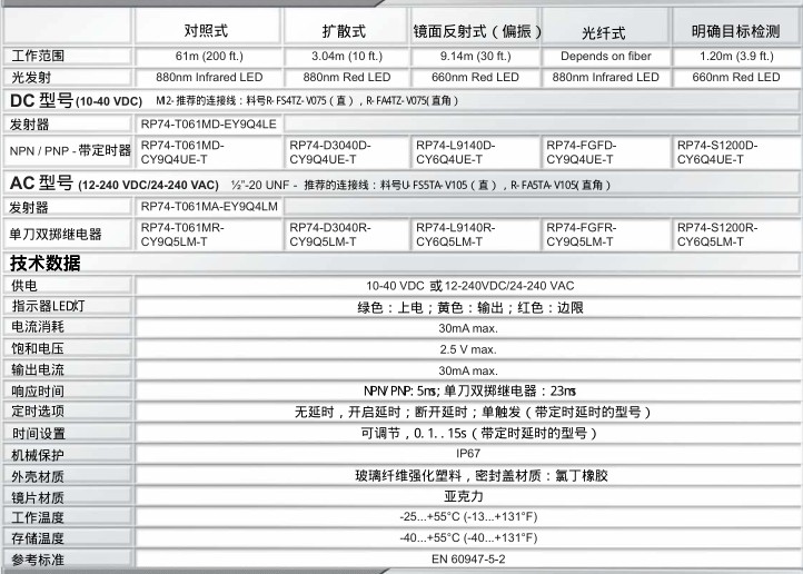 HTM Sensors 光電傳感器 - RP74 系列