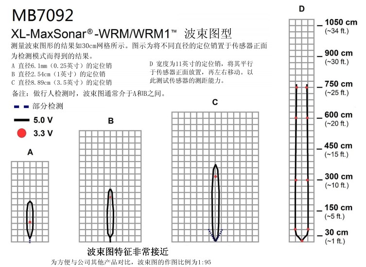 三、超聲波傳感器MB7092波束圖:
