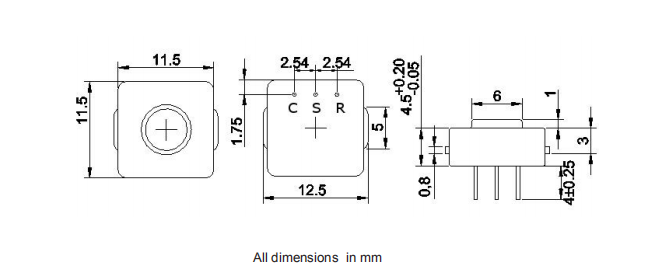 HCHO 甲醛傳感器(ES1-HCHO-5)外形結(jié)構(gòu)圖: