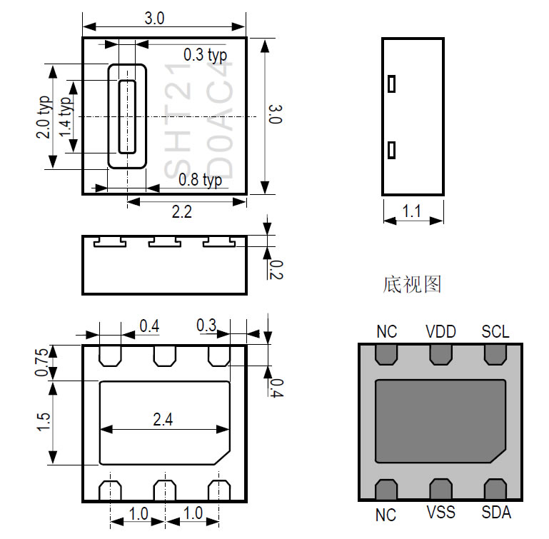 五、瑞士Sensirion 數(shù)字溫濕度傳感器SHT20外形尺寸