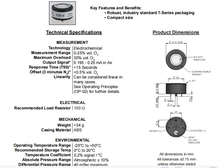 英國(guó)CITY 氧氣傳感器 O2傳感器 7OXV特點(diǎn):