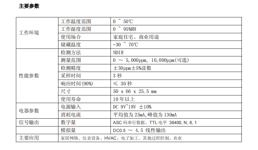 韓國ELT 紅外二氧化碳傳感器 CO2傳感器 B-530 參數(shù):