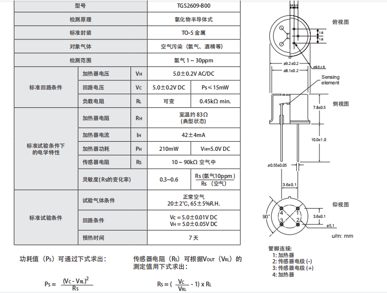 TGS2609-B00對極其微弱的空氣污染氣體具有很高的靈敏度。像香煙煙霧中存在的氫氣或一氧化碳,此傳感器可檢測到幾個ppm的氫氣。由于實(shí)現(xiàn)了小型化,加熱器電流僅需42mA,外殼采用標(biāo)準(zhǔn)的TO-5金屬封裝。
