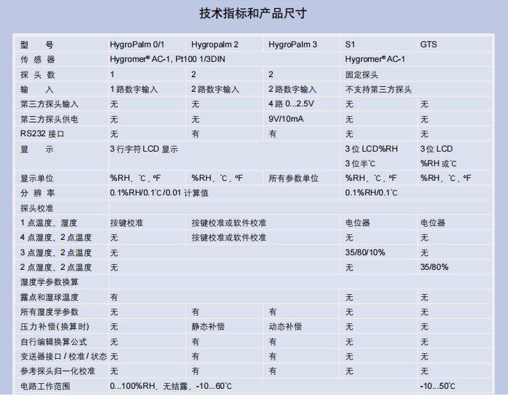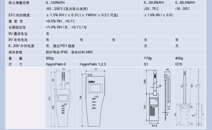 瑞士羅卓尼克Rotronic 溫濕度手持表 HygroPalm 1 參數(shù):
