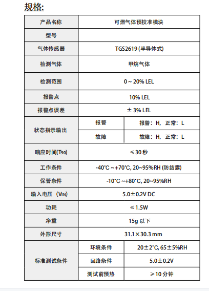 日本FIGARO 可燃?xì)怏w預(yù)校準(zhǔn)模塊 FSM-19T-02  參數(shù):
