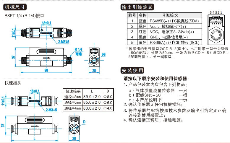 傳感芯片采用熱質(zhì)量流量計(jì)量,無(wú)需溫度壓力補(bǔ)償