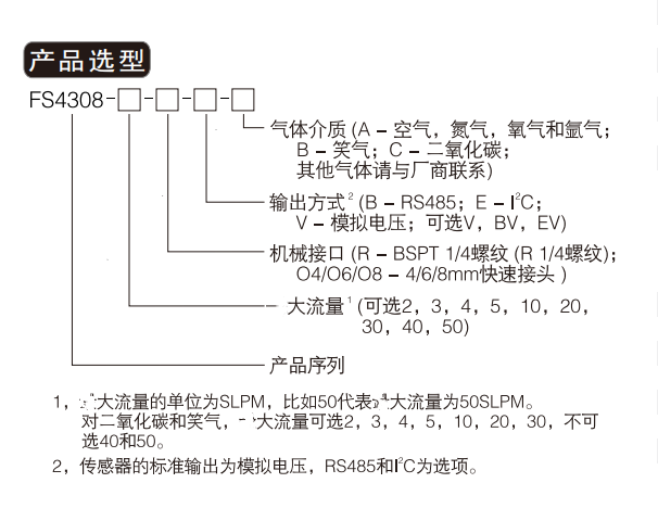 美國(guó)Siargo矽翔 氣體質(zhì)量流量傳感器 FS4300系列 選型:
