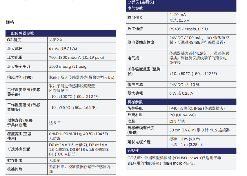 SMART 免標(biāo)定 即插即用型氧氣變送器/監(jiān)測儀 OxyPro-XT 參數(shù):